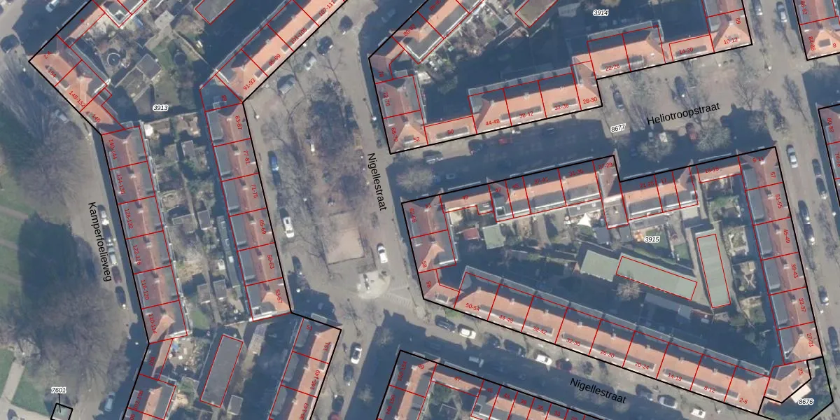 Het perceel waarop Nigellestraat 66 staat heeft een oppervlakte van 4158 m². Dit is een zeer groot perceel. De perceeloppervlakte wordt geregistreerd door het Kadaster. Gedetailleerde informatie over de maten van dit perceel kunt u vinden in het rapport Kadastrale kaart met maatvoering van Nigellestraat 66.