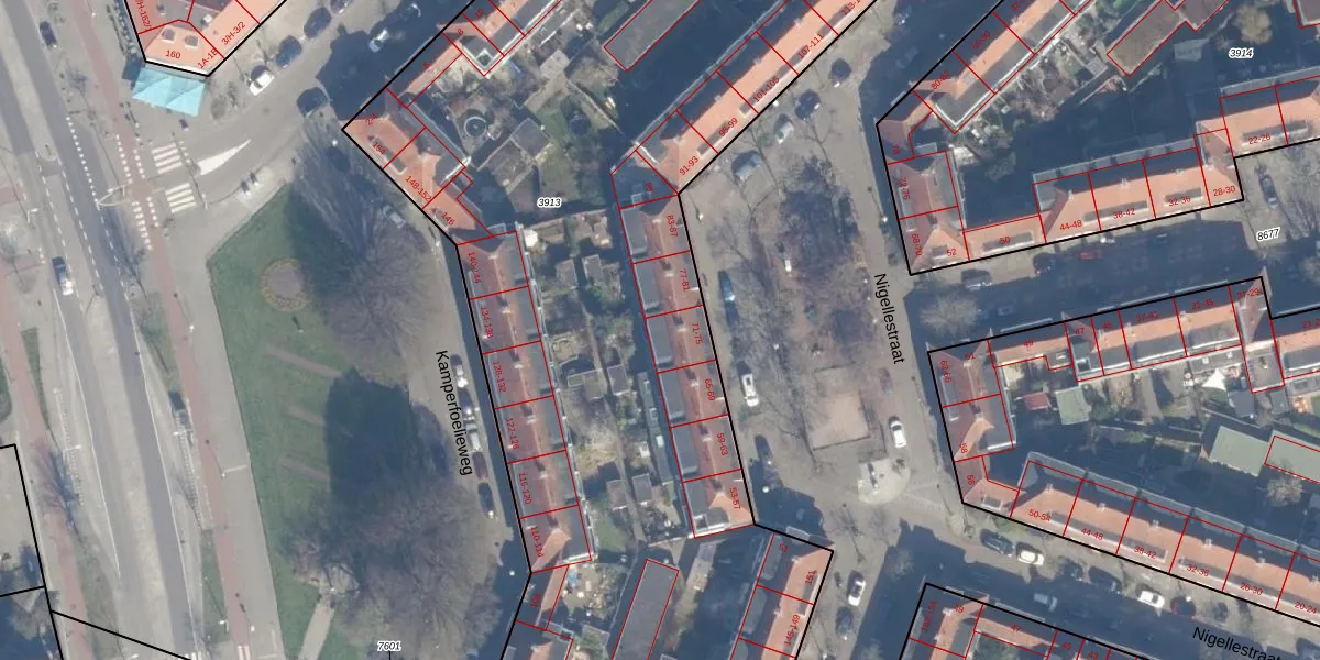 Het perceel waarop Nigellestraat 75 staat heeft een oppervlakte van 7017 m². Dit is een zeer groot perceel. De perceeloppervlakte wordt geregistreerd door het Kadaster. Gedetailleerde informatie over de maten van dit perceel kunt u vinden in het rapport Kadastrale kaart met maatvoering van Nigellestraat 75.