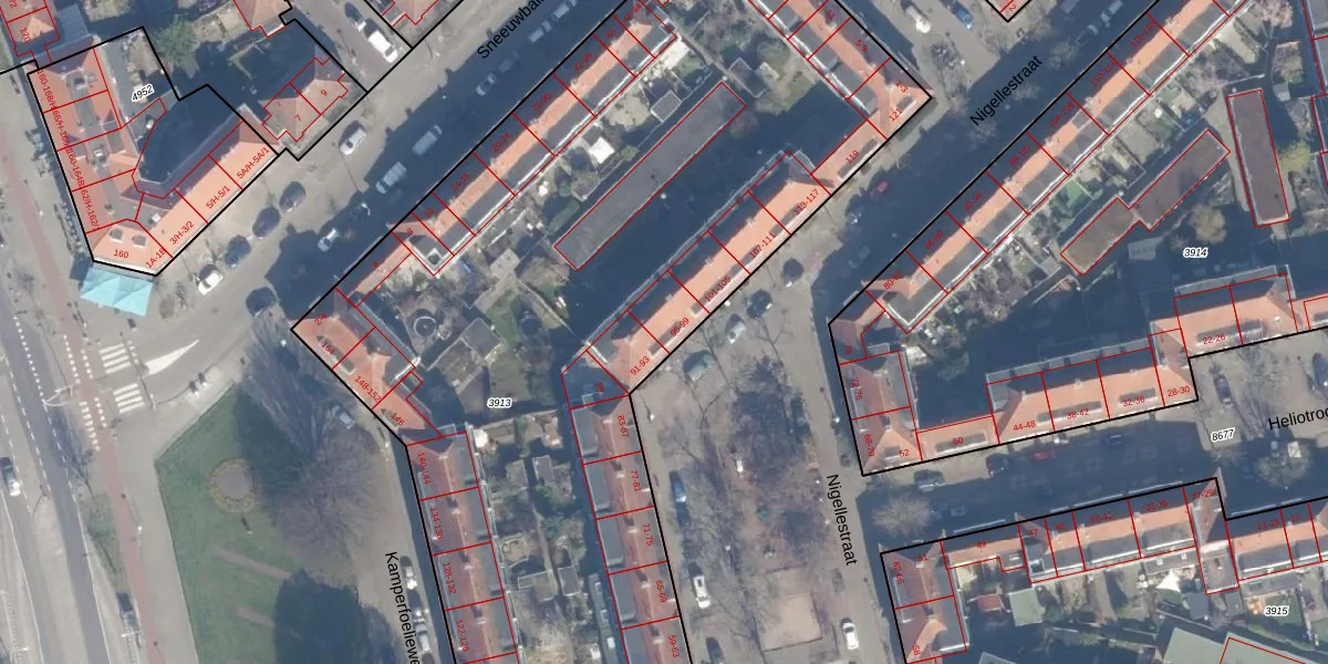Het perceel waarop Nigellestraat 95 staat heeft een oppervlakte van 7017 m². Dit is een zeer groot perceel. De perceeloppervlakte wordt geregistreerd door het Kadaster. Gedetailleerde informatie over de maten van dit perceel kunt u vinden in het rapport Kadastrale kaart met maatvoering van Nigellestraat 95.