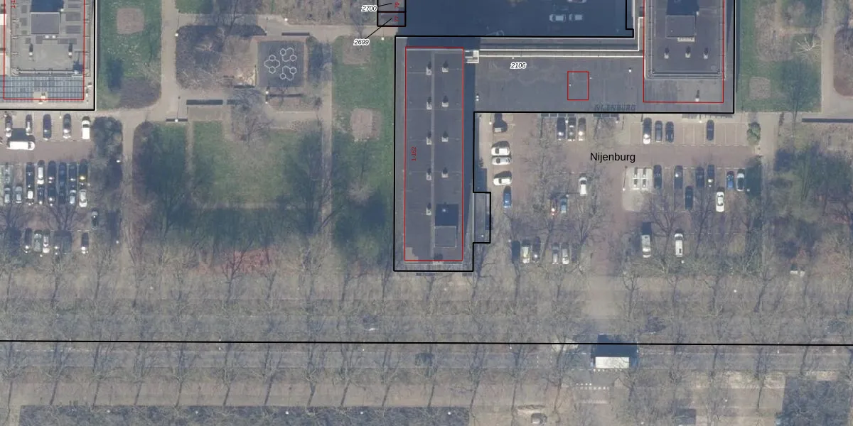 Het perceel waarop Nijenburg 5 staat heeft een oppervlakte van 2815 m². Dit is een zeer groot perceel. De perceeloppervlakte wordt geregistreerd door het Kadaster. Gedetailleerde informatie over de maten van dit perceel kunt u vinden in het rapport Kadastrale kaart met maatvoering van Nijenburg 5.