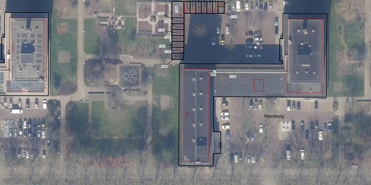 Het perceel waarop Nijenburg 63 staat heeft een oppervlakte van 2815 m². Dit is een zeer groot perceel. De perceeloppervlakte wordt geregistreerd door het Kadaster. Gedetailleerde informatie over de maten van dit perceel kunt u vinden in het rapport Kadastrale kaart met maatvoering van Nijenburg 63.