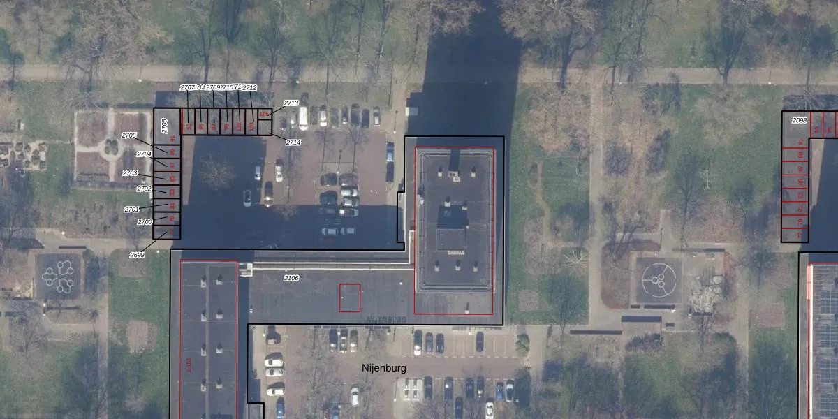 Het perceel waarop Nijenburg 96 staat heeft een oppervlakte van 2815 m². Dit is een zeer groot perceel. De perceeloppervlakte wordt geregistreerd door het Kadaster. Gedetailleerde informatie over de maten van dit perceel kunt u vinden in het rapport Kadastrale kaart met maatvoering van Nijenburg 96.