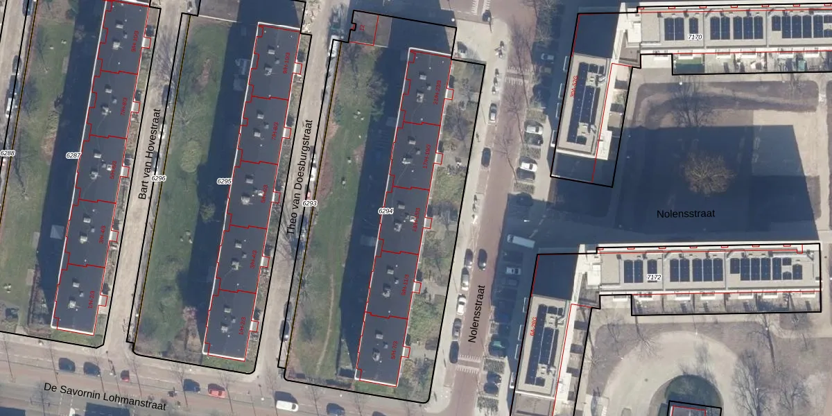 Het perceel waarop Nolensstraat 15-1 staat heeft een oppervlakte van 3066 m². Dit is een zeer groot perceel. De perceeloppervlakte wordt geregistreerd door het Kadaster. Gedetailleerde informatie over de maten van dit perceel kunt u vinden in het rapport Kadastrale kaart met maatvoering van Nolensstraat 15-1.