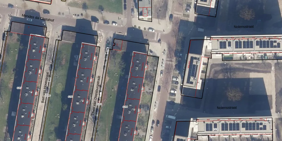 Het perceel waarop Nolensstraat 21-2 staat heeft een oppervlakte van 3066 m². Dit is een zeer groot perceel. De perceeloppervlakte wordt geregistreerd door het Kadaster. Gedetailleerde informatie over de maten van dit perceel kunt u vinden in het rapport Kadastrale kaart met maatvoering van Nolensstraat 21-2.