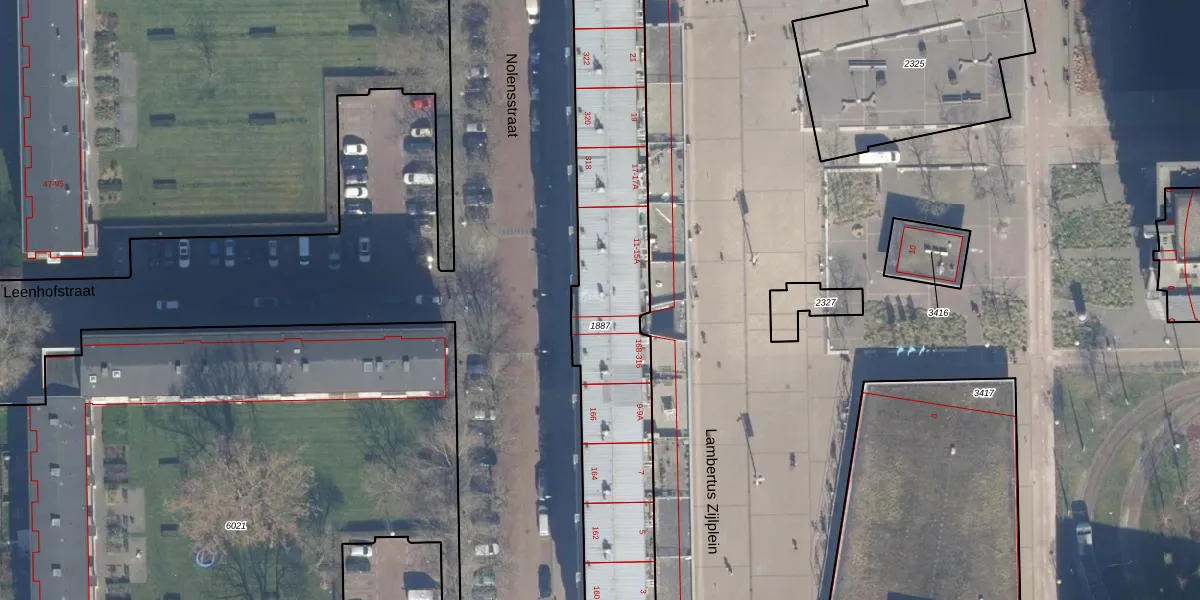 Het perceel waarop Nolensstraat 314 staat heeft een oppervlakte van 2005 m². Dit is een zeer groot perceel. De perceeloppervlakte wordt geregistreerd door het Kadaster. Gedetailleerde informatie over de maten van dit perceel kunt u vinden in het rapport Kadastrale kaart met maatvoering van Nolensstraat 314.