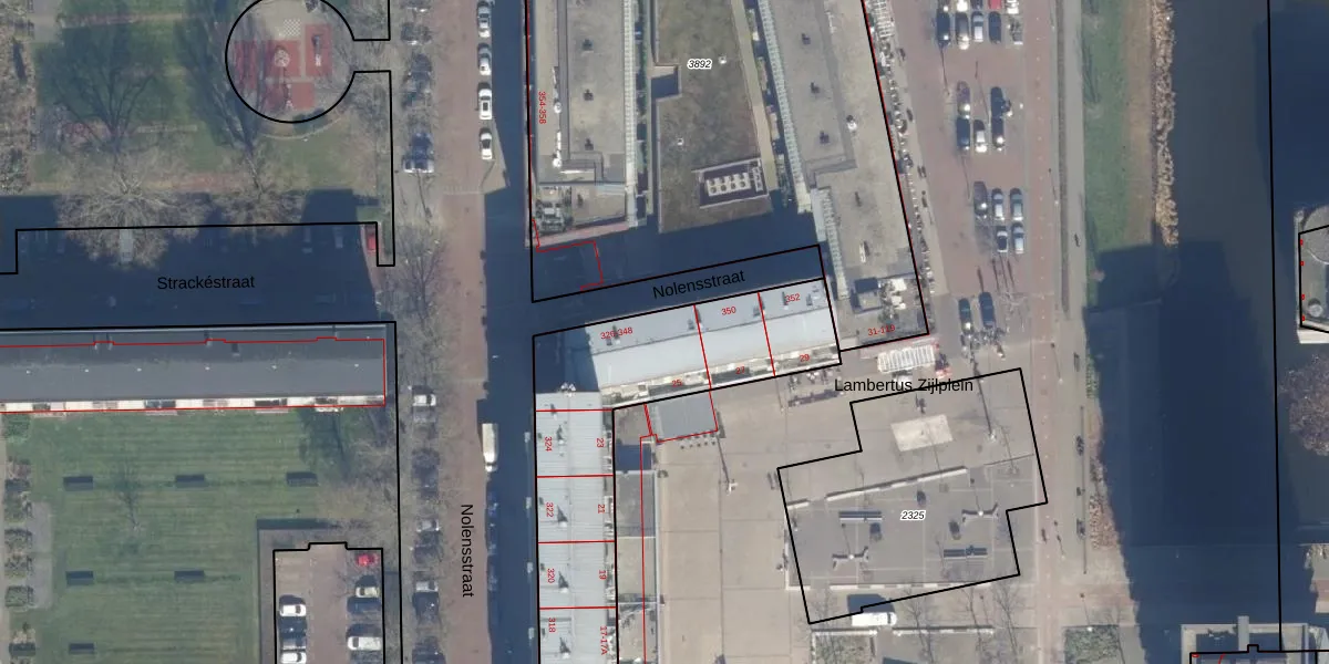 Het perceel waarop Nolensstraat 346 staat heeft een oppervlakte van 2005 m². Dit is een zeer groot perceel. De perceeloppervlakte wordt geregistreerd door het Kadaster. Gedetailleerde informatie over de maten van dit perceel kunt u vinden in het rapport Kadastrale kaart met maatvoering van Nolensstraat 346.