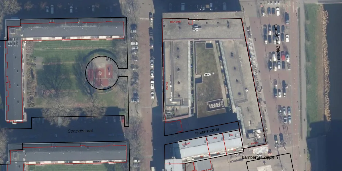 Het perceel waarop Nolensstraat 358 staat heeft een oppervlakte van 3491 m². Dit is een zeer groot perceel. De perceeloppervlakte wordt geregistreerd door het Kadaster. Gedetailleerde informatie over de maten van dit perceel kunt u vinden in het rapport Kadastrale kaart met maatvoering van Nolensstraat 358.