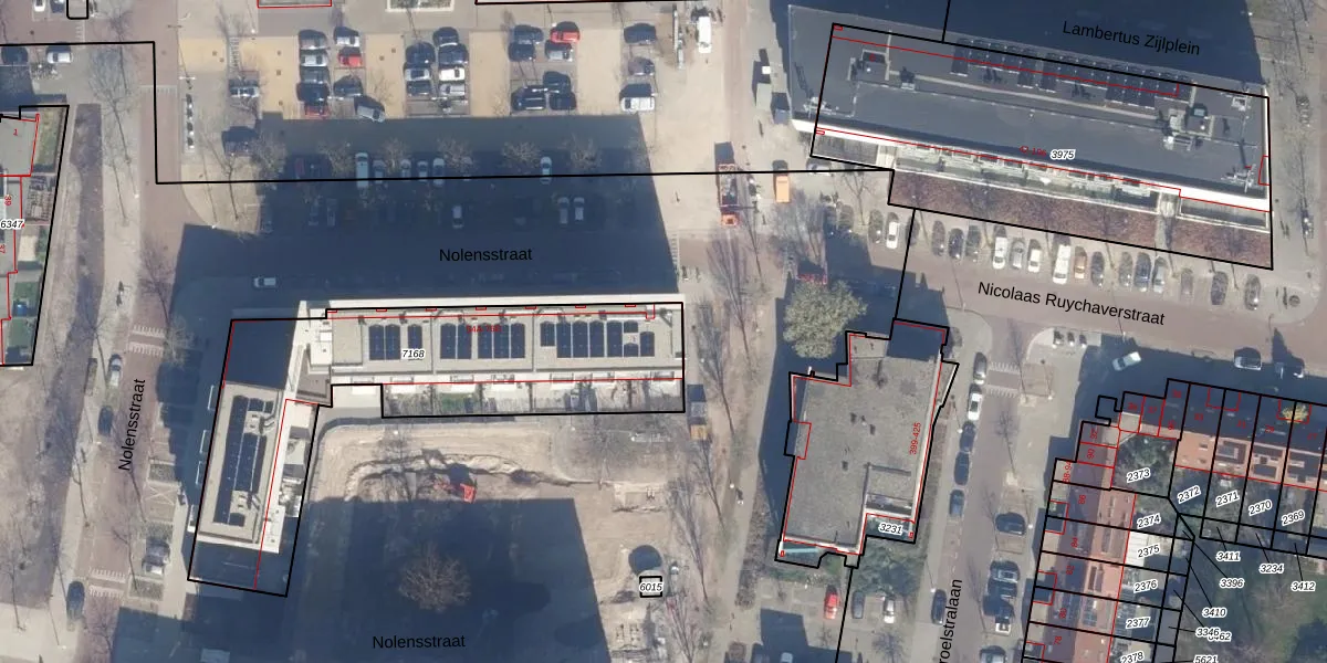 Het perceel waarop Nolensstraat 74-G staat heeft een oppervlakte van 1465 m². Dit is een zeer groot perceel. De perceeloppervlakte wordt geregistreerd door het Kadaster. Gedetailleerde informatie over de maten van dit perceel kunt u vinden in het rapport Kadastrale kaart met maatvoering van Nolensstraat 74-G.