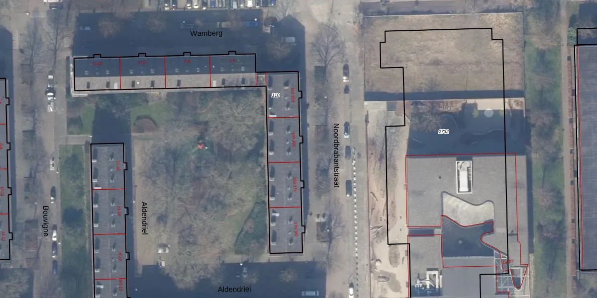Het perceel waarop Noordbrabantstraat 166 staat heeft een oppervlakte van 1361 m². Dit is een zeer groot perceel. De perceeloppervlakte wordt geregistreerd door het Kadaster. Gedetailleerde informatie over de maten van dit perceel kunt u vinden in het rapport Kadastrale kaart met maatvoering van Noordbrabantstraat 166.