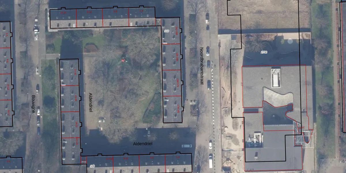 Het perceel waarop Noordbrabantstraat 172-3 staat heeft een oppervlakte van 1361 m². Dit is een zeer groot perceel. De perceeloppervlakte wordt geregistreerd door het Kadaster. Gedetailleerde informatie over de maten van dit perceel kunt u vinden in het rapport Kadastrale kaart met maatvoering van Noordbrabantstraat 172-3.