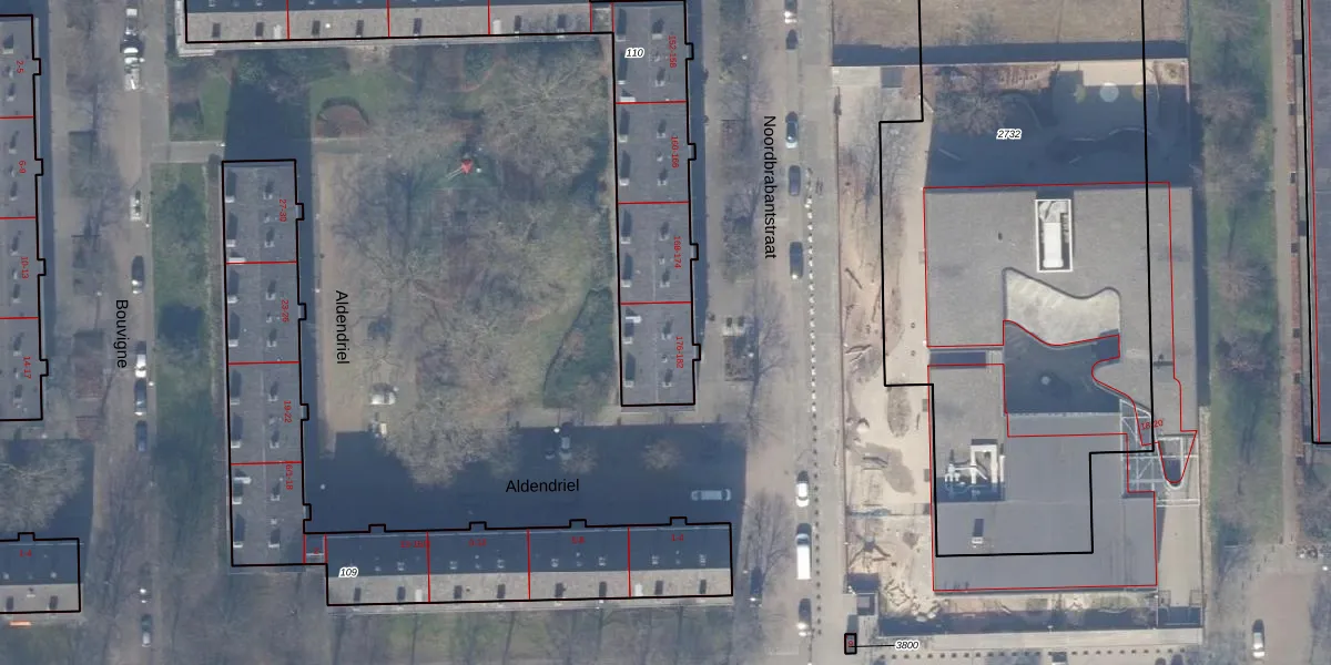 Het perceel waarop Noordbrabantstraat 178-2 staat heeft een oppervlakte van 1361 m². Dit is een zeer groot perceel. De perceeloppervlakte wordt geregistreerd door het Kadaster. Gedetailleerde informatie over de maten van dit perceel kunt u vinden in het rapport Kadastrale kaart met maatvoering van Noordbrabantstraat 178-2.
