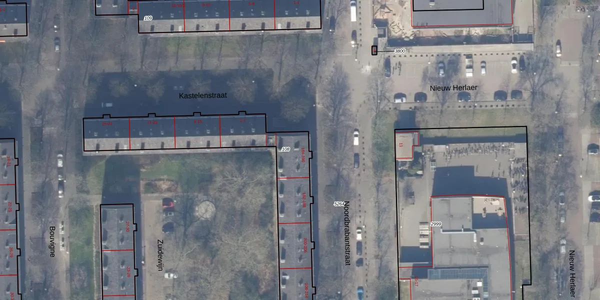 Het perceel waarop Noordbrabantstraat 186-3 staat heeft een oppervlakte van 1361 m². Dit is een zeer groot perceel. De perceeloppervlakte wordt geregistreerd door het Kadaster. Gedetailleerde informatie over de maten van dit perceel kunt u vinden in het rapport Kadastrale kaart met maatvoering van Noordbrabantstraat 186-3.