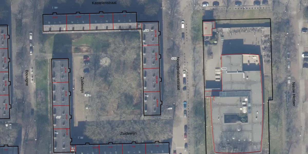 Het perceel waarop Noordbrabantstraat 202-2 staat heeft een oppervlakte van 1361 m². Dit is een zeer groot perceel. De perceeloppervlakte wordt geregistreerd door het Kadaster. Gedetailleerde informatie over de maten van dit perceel kunt u vinden in het rapport Kadastrale kaart met maatvoering van Noordbrabantstraat 202-2.