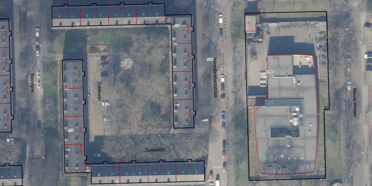 Het perceel waarop Noordbrabantstraat 204-3 staat heeft een oppervlakte van 1361 m². Dit is een zeer groot perceel. De perceeloppervlakte wordt geregistreerd door het Kadaster. Gedetailleerde informatie over de maten van dit perceel kunt u vinden in het rapport Kadastrale kaart met maatvoering van Noordbrabantstraat 204-3.
