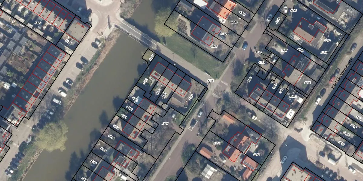 Gebruik de zoekbalk of klik op een perceel voor informatie over de adressen binnen dit perceel.