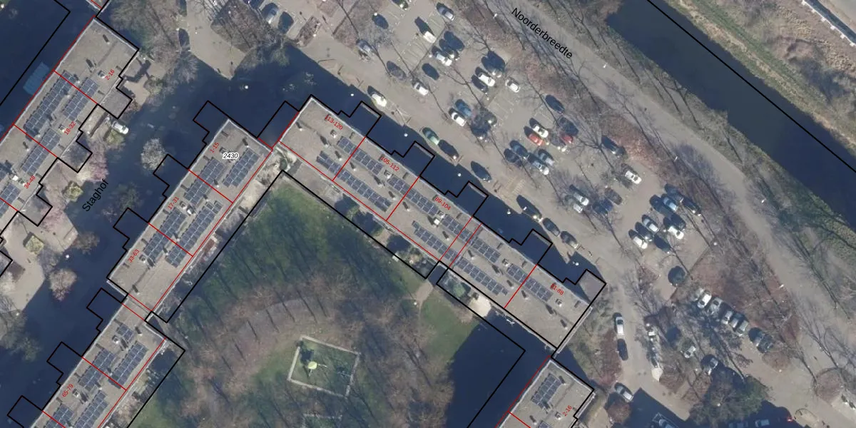 Het perceel waarop Noorderbreedte 101 staat heeft een oppervlakte van 5480 m². Dit is een zeer groot perceel. De perceeloppervlakte wordt geregistreerd door het Kadaster. Gedetailleerde informatie over de maten van dit perceel kunt u vinden in het rapport Kadastrale kaart met maatvoering van Noorderbreedte 101.