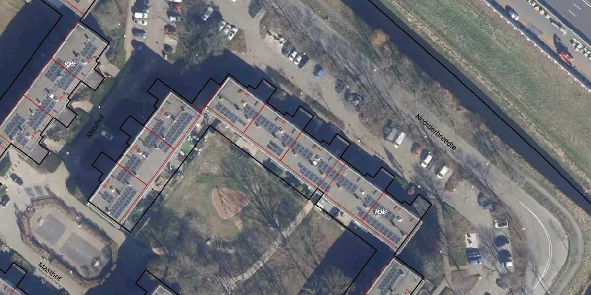 Noorderbreedte 23 is gelegen op kadastraal perceel ASD36AQ2437. Deze kadastrale aanduiding is uniek en wordt gebruikt door het Kadaster om eigendomsrechten en andere zakelijke rechten vast te leggen. Het perceel maakt onderdeel uit van de kadastrale gemeente Amsterdam.