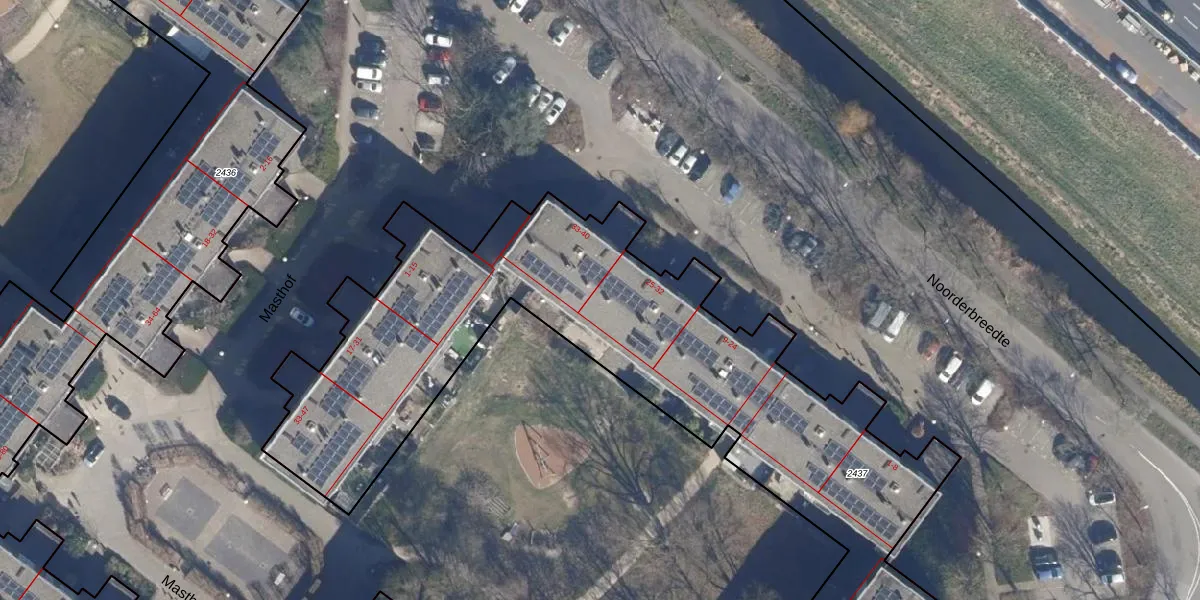 Noorderbreedte 32 is gelegen op kadastraal perceel ASD36AQ2437. Deze kadastrale aanduiding is uniek en wordt gebruikt door het Kadaster om eigendomsrechten en andere zakelijke rechten vast te leggen. Het perceel maakt onderdeel uit van de kadastrale gemeente Amsterdam.