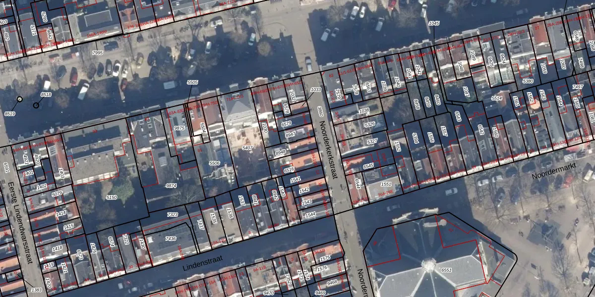 Het perceel waarop Noorderkerkstraat 8-D staat heeft een oppervlakte van 74 m². Dit is een klein perceel. De perceeloppervlakte wordt geregistreerd door het Kadaster. Gedetailleerde informatie over de maten van dit perceel kunt u vinden in het rapport Kadastrale kaart met maatvoering van Noorderkerkstraat 8-D.
