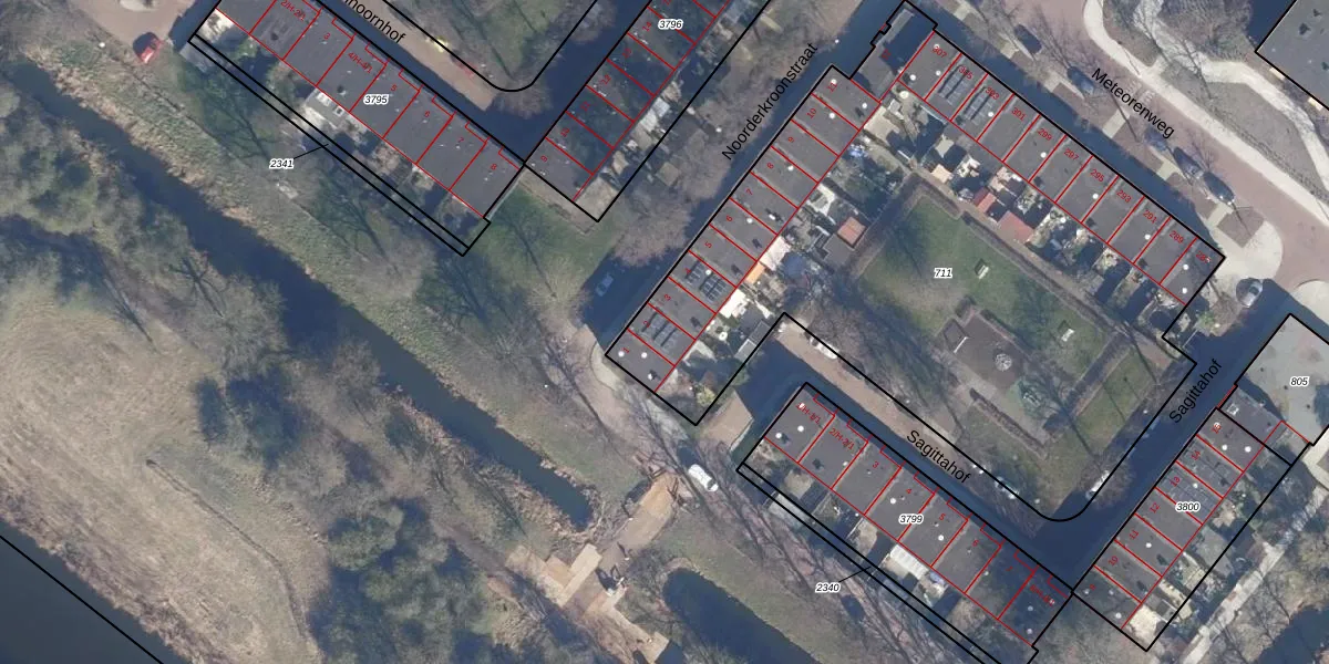 Het perceel waarop Noorderkroonstraat 2 staat heeft een oppervlakte van 3598 m². Dit is een zeer groot perceel. De perceeloppervlakte wordt geregistreerd door het Kadaster. Gedetailleerde informatie over de maten van dit perceel kunt u vinden in het rapport Kadastrale kaart met maatvoering van Noorderkroonstraat 2.