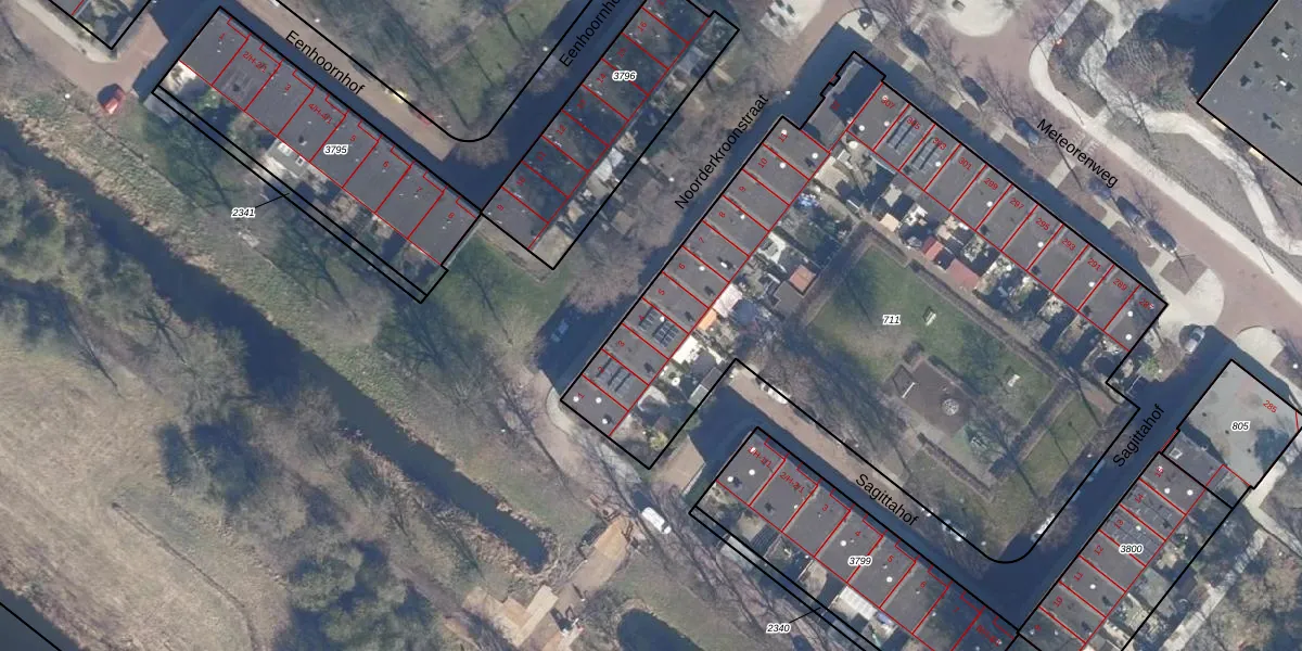 Het perceel waarop Noorderkroonstraat 4 staat heeft een oppervlakte van 3598 m². Dit is een zeer groot perceel. De perceeloppervlakte wordt geregistreerd door het Kadaster. Gedetailleerde informatie over de maten van dit perceel kunt u vinden in het rapport Kadastrale kaart met maatvoering van Noorderkroonstraat 4.