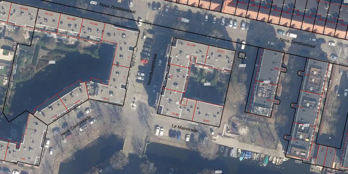 Het perceel waarop het adres ligt is ASD20-X-2112. De afkorting 'ASD20' staat voor kadastrale gemeente Amsterdam. Het perceel is met 1618 m² relatief groot. Het gemiddelde ligt in de kadastrale gemeente Amsterdam op 466,51 m². Het kleinste perceel in de kadastrale gemeente is 0 m² groot. De grootste perceeloppervlakte is 3,6 ha. Er zijn 56 adressen aanwezig op het perceel. In de Basisregistratie Kadaster (BRK) werden de grenzen van het perceel geregistreerd op 26-01-2007.