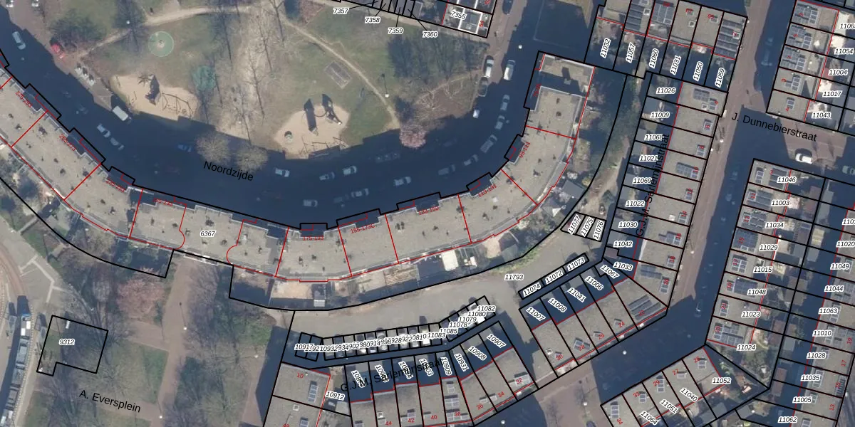 Het perceel waarop Noordzijde 135 staat heeft een oppervlakte van 4400 m². Dit is een zeer groot perceel. De perceeloppervlakte wordt geregistreerd door het Kadaster. Gedetailleerde informatie over de maten van dit perceel kunt u vinden in het rapport Kadastrale kaart met maatvoering van Noordzijde 135.