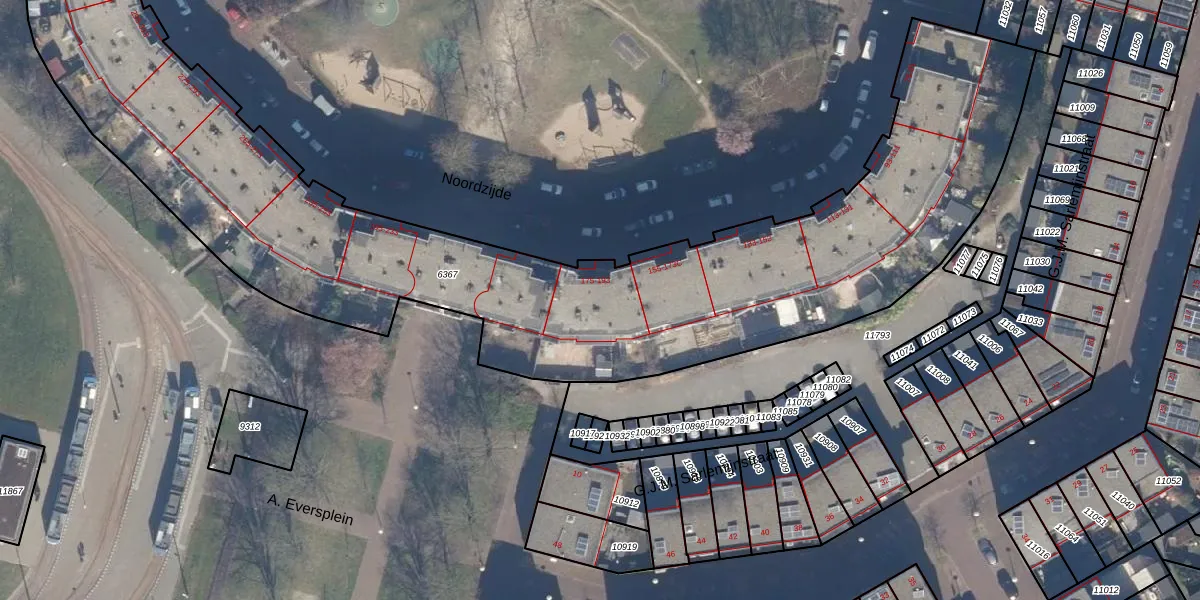 Het perceel waarop Noordzijde 185 staat heeft een oppervlakte van 4400 m². Dit is een zeer groot perceel. De perceeloppervlakte wordt geregistreerd door het Kadaster. Gedetailleerde informatie over de maten van dit perceel kunt u vinden in het rapport Kadastrale kaart met maatvoering van Noordzijde 185.