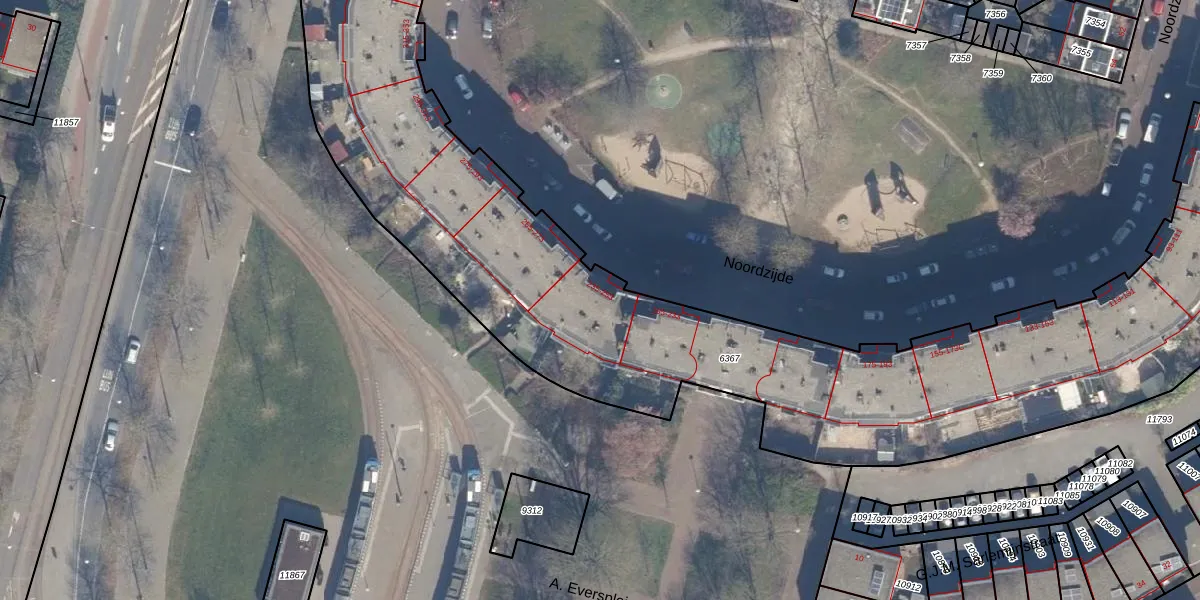 Het perceel waarop Noordzijde 241 staat heeft een oppervlakte van 4400 m². Dit is een zeer groot perceel. De perceeloppervlakte wordt geregistreerd door het Kadaster. Gedetailleerde informatie over de maten van dit perceel kunt u vinden in het rapport Kadastrale kaart met maatvoering van Noordzijde 241.
