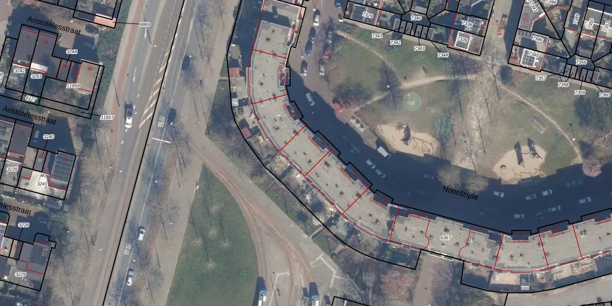 Het perceel waarop Noordzijde 289 staat heeft een oppervlakte van 4400 m². Dit is een zeer groot perceel. De perceeloppervlakte wordt geregistreerd door het Kadaster. Gedetailleerde informatie over de maten van dit perceel kunt u vinden in het rapport Kadastrale kaart met maatvoering van Noordzijde 289.