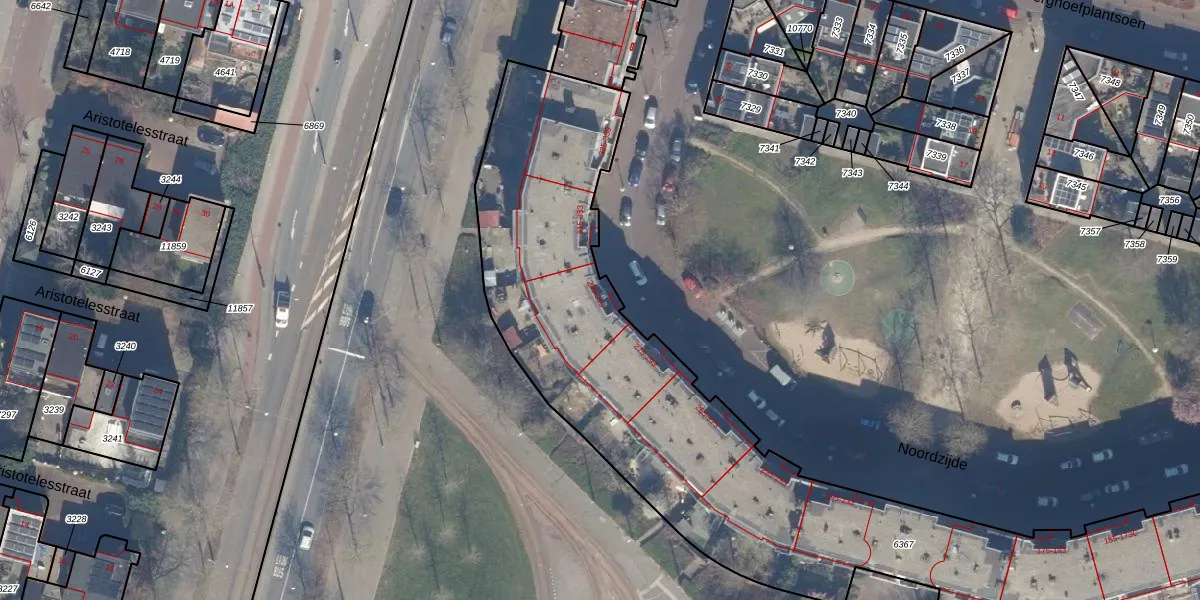Het perceel waarop Noordzijde 295 staat heeft een oppervlakte van 4400 m². Dit is een zeer groot perceel. De perceeloppervlakte wordt geregistreerd door het Kadaster. Gedetailleerde informatie over de maten van dit perceel kunt u vinden in het rapport Kadastrale kaart met maatvoering van Noordzijde 295.