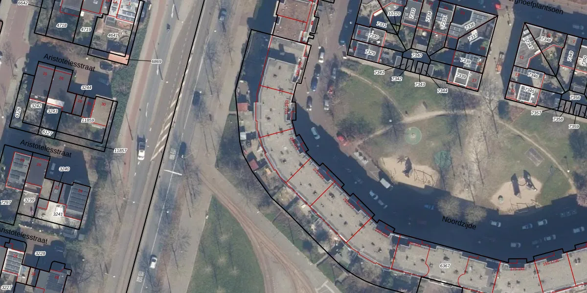 Het perceel waarop Noordzijde 297 staat heeft een oppervlakte van 4400 m². Dit is een zeer groot perceel. De perceeloppervlakte wordt geregistreerd door het Kadaster. Gedetailleerde informatie over de maten van dit perceel kunt u vinden in het rapport Kadastrale kaart met maatvoering van Noordzijde 297.