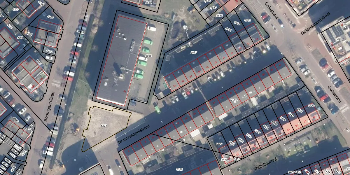 Notarisappelstraat 33 is gelegen op kadastraal perceel ASD28AH5647. Deze kadastrale aanduiding is uniek en wordt gebruikt door het Kadaster om eigendomsrechten en andere zakelijke rechten vast te leggen. Het perceel maakt onderdeel uit van de kadastrale gemeente Amsterdam.