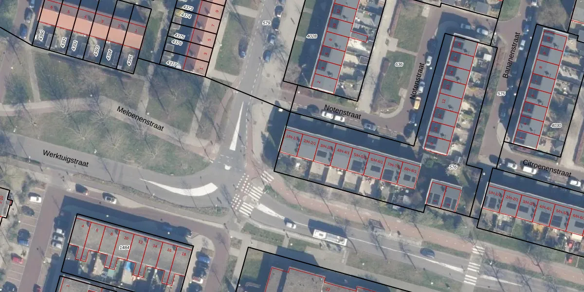 Het perceel waarop Notenstraat 1-1 staat heeft een oppervlakte van 2137 m². Dit is een zeer groot perceel. De perceeloppervlakte wordt geregistreerd door het Kadaster. Gedetailleerde informatie over de maten van dit perceel kunt u vinden in het rapport Kadastrale kaart met maatvoering van Notenstraat 1-1.