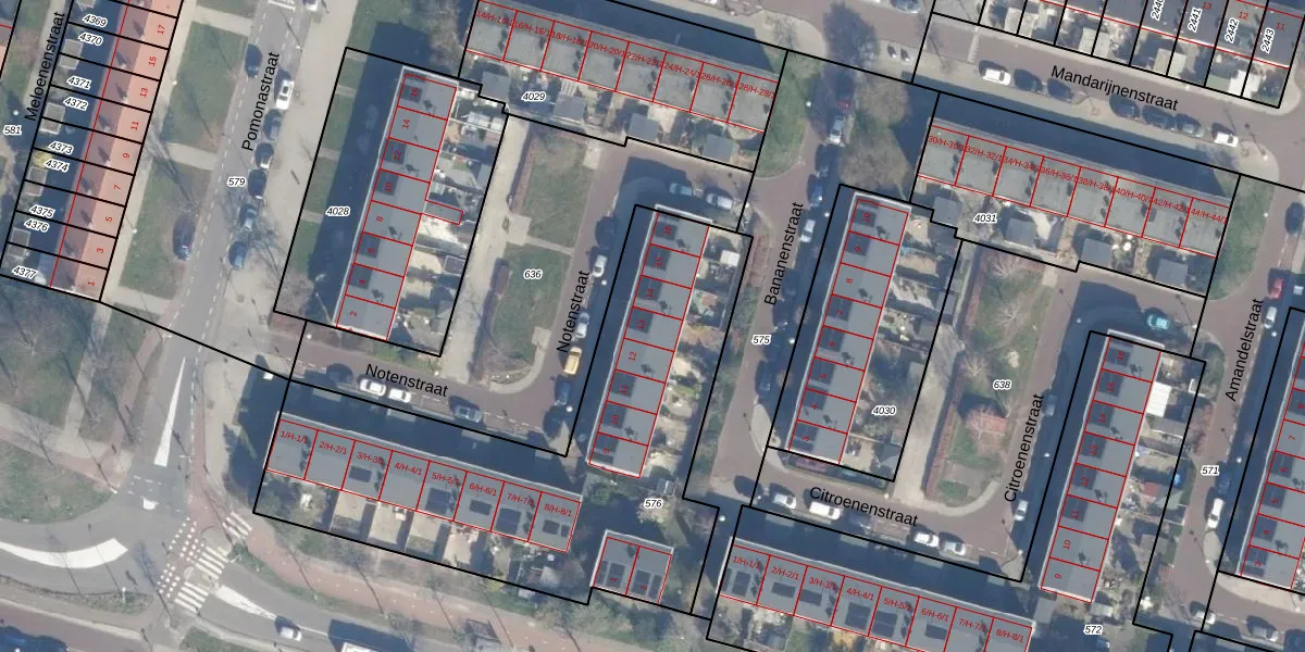 Het perceel waarop Notenstraat 13 staat heeft een oppervlakte van 2137 m². Dit is een zeer groot perceel. De perceeloppervlakte wordt geregistreerd door het Kadaster. Gedetailleerde informatie over de maten van dit perceel kunt u vinden in het rapport Kadastrale kaart met maatvoering van Notenstraat 13.