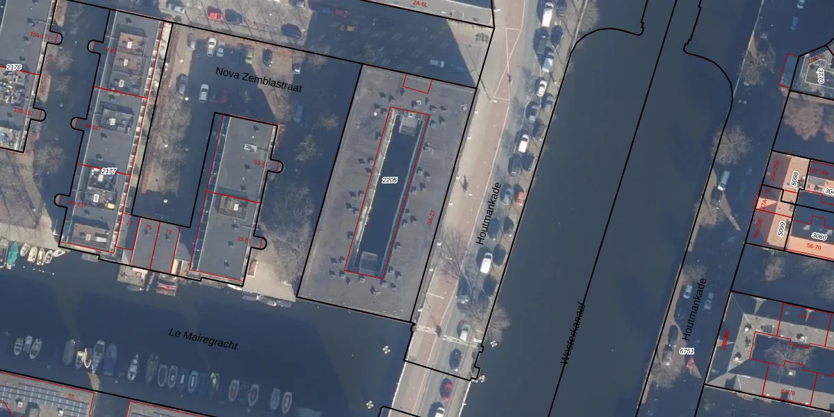 Het adres ligt op het perceel ASD20-X-2205, dat zich in de kadastrale gemeente Amsterdam bevindt. De oppervlakte van het perceel is 1625 m². Dat is groter dan gemiddeld in Amsterdam, waar de gemiddelde perceeloppervlakte op 466,51 m² ligt. De grootste perceeloppervlakte in de kadastrale gemeente is 3,6 ha. De kleinste oppervlakte bedraagt 0 m². Op het perceel zijn 88 adressen aanwezig. De huidige grenzen van het perceel zijn digitaal in de Basisregistratie Kadaster (BRK) geregistreerd op 07-01-2005.