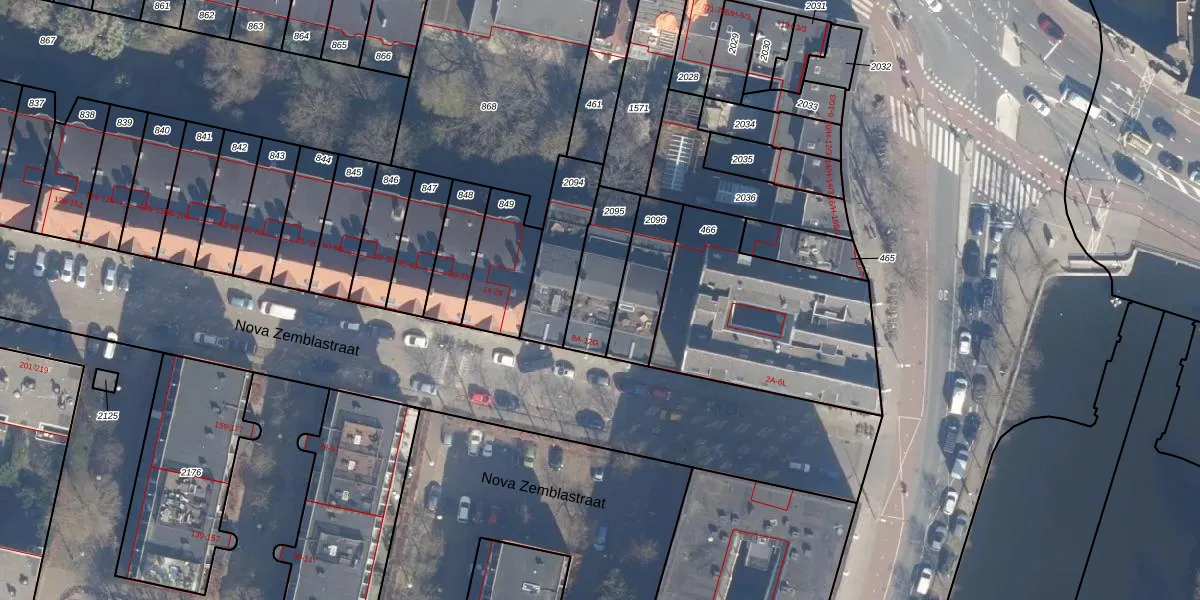 Nova Zemblastraat 12-B is gelegen op kadastraal perceel ASD20X2095. Deze kadastrale aanduiding is uniek en wordt gebruikt door het Kadaster om eigendomsrechten en andere zakelijke rechten vast te leggen. Het perceel maakt onderdeel uit van de kadastrale gemeente Amsterdam.