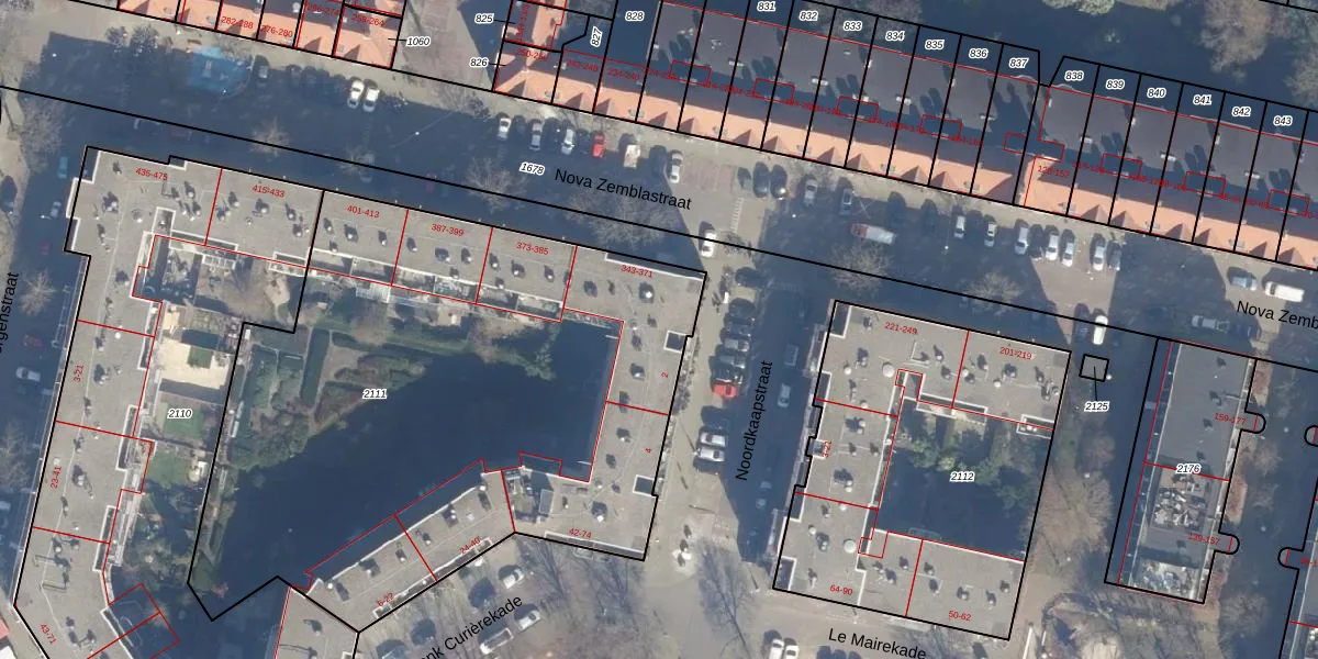 Nova Zemblastraat 357 is gelegen op kadastraal perceel ASD20X2111. Deze kadastrale aanduiding is uniek en wordt gebruikt door het Kadaster om eigendomsrechten en andere zakelijke rechten vast te leggen. Het perceel maakt onderdeel uit van de kadastrale gemeente Amsterdam.