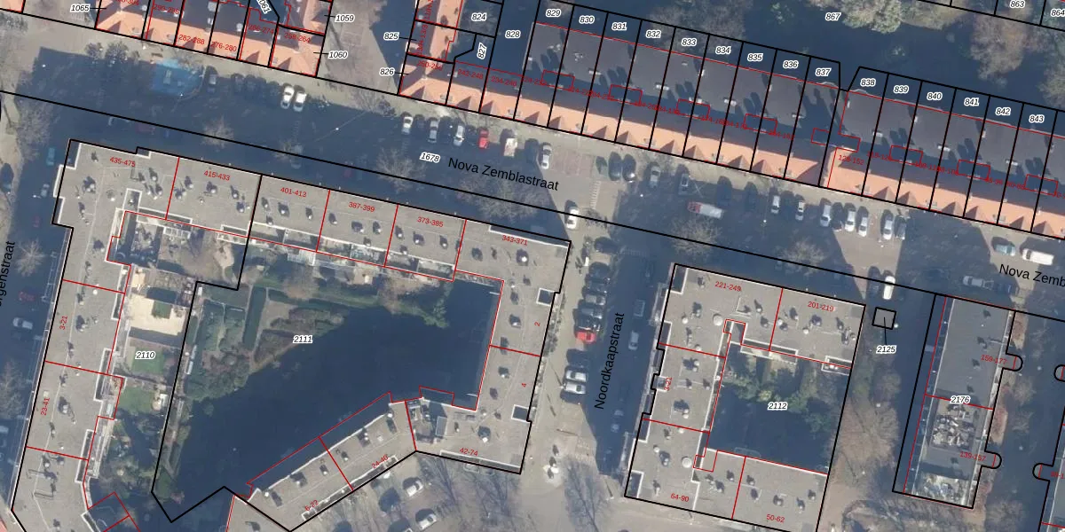 Nova Zemblastraat 361 is gelegen op kadastraal perceel ASD20X2111. Deze kadastrale aanduiding is uniek en wordt gebruikt door het Kadaster om eigendomsrechten en andere zakelijke rechten vast te leggen. Het perceel maakt onderdeel uit van de kadastrale gemeente Amsterdam.