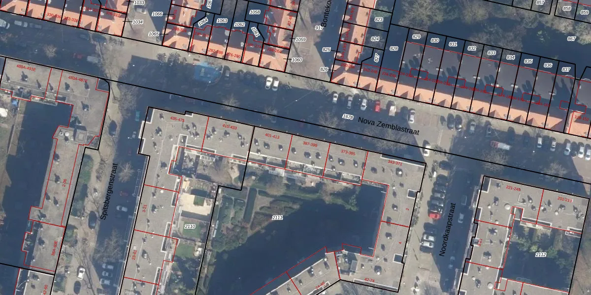 Nova Zemblastraat 387 is gelegen op kadastraal perceel ASD20X2111. Deze kadastrale aanduiding is uniek en wordt gebruikt door het Kadaster om eigendomsrechten en andere zakelijke rechten vast te leggen. Het perceel maakt onderdeel uit van de kadastrale gemeente Amsterdam.