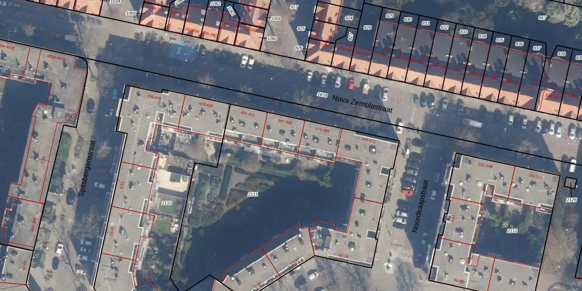 Nova Zemblastraat 397 is gelegen op kadastraal perceel ASD20X2111. Deze kadastrale aanduiding is uniek en wordt gebruikt door het Kadaster om eigendomsrechten en andere zakelijke rechten vast te leggen. Het perceel maakt onderdeel uit van de kadastrale gemeente Amsterdam.