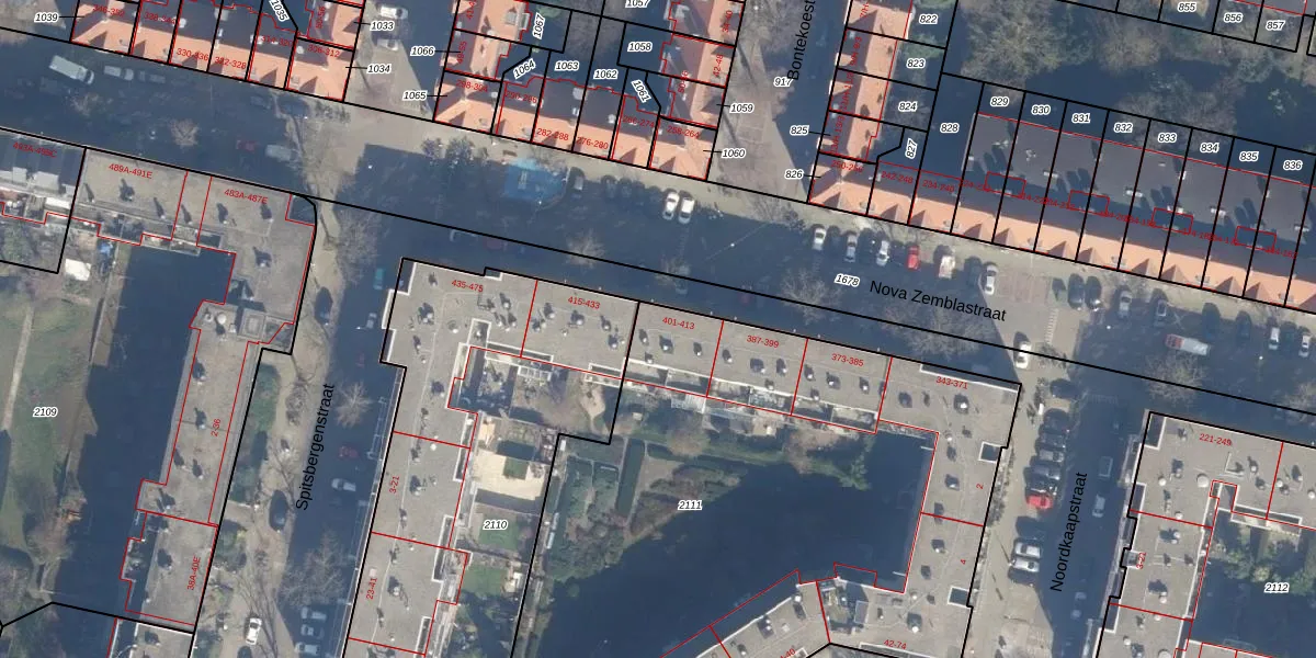 Nova Zemblastraat 403 is gelegen op kadastraal perceel ASD20X2111. Deze kadastrale aanduiding is uniek en wordt gebruikt door het Kadaster om eigendomsrechten en andere zakelijke rechten vast te leggen. Het perceel maakt onderdeel uit van de kadastrale gemeente Amsterdam.