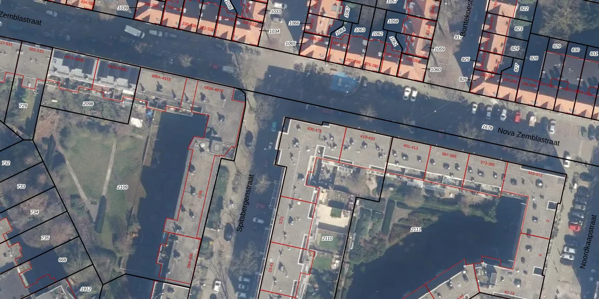 Nova Zemblastraat 471 is gelegen op kadastraal perceel ASD20X2110. Deze kadastrale aanduiding is uniek en wordt gebruikt door het Kadaster om eigendomsrechten en andere zakelijke rechten vast te leggen. Het perceel maakt onderdeel uit van de kadastrale gemeente Amsterdam.