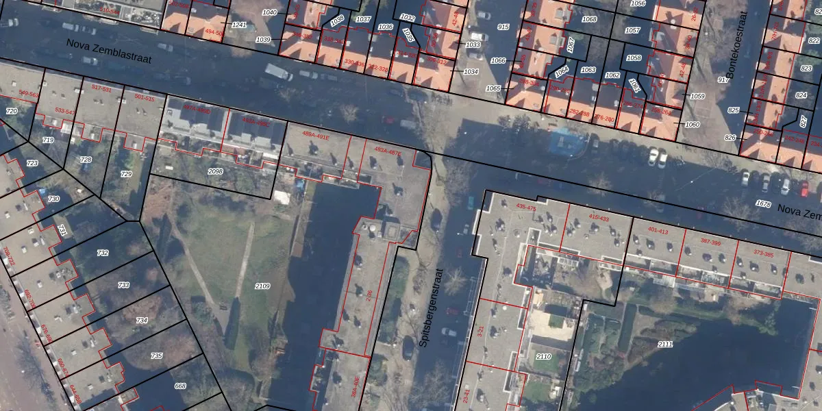 Het perceel waarop Nova Zemblastraat 483-D staat heeft een oppervlakte van 3275 m². Dit is een zeer groot perceel. De perceeloppervlakte wordt geregistreerd door het Kadaster. Gedetailleerde informatie over de maten van dit perceel kunt u vinden in het rapport Kadastrale kaart met maatvoering van Nova Zemblastraat 483-D.