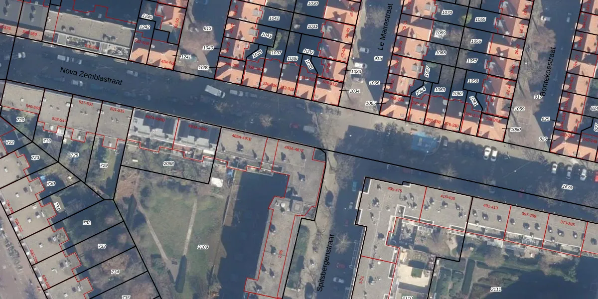 Het perceel waarop Nova Zemblastraat 485-E staat heeft een oppervlakte van 3275 m². Dit is een zeer groot perceel. De perceeloppervlakte wordt geregistreerd door het Kadaster. Gedetailleerde informatie over de maten van dit perceel kunt u vinden in het rapport Kadastrale kaart met maatvoering van Nova Zemblastraat 485-E.