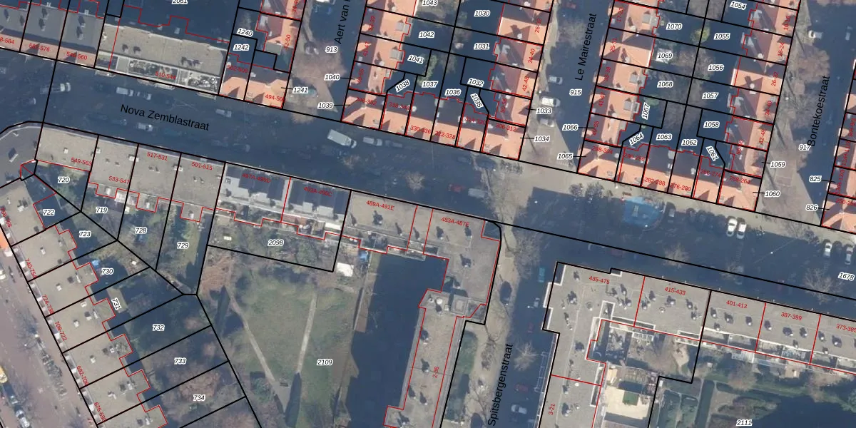 Het adres is gelegen op perceel 2109 in de sectie X en de kadastrale gemeente Amsterdam. De kadastrale aanduiding is aldus ASD20-X-2109. De oppervlakte van het perceel is 3275 m². Dat is groter dan gemiddeld in Amsterdam, waar de gemiddelde perceeloppervlakte op 466,51 m² ligt. Het grootste perceel in de kadastrale gemeente is 3,6 ha. Het kleinste perceel heeft een oppervlakte van 0 m². Op het perceel zijn 54 adressen aanwezig. In de Basisregistratie Kadaster (BRK) werden de grenzen van het perceel geregistreerd op 26-01-2007.