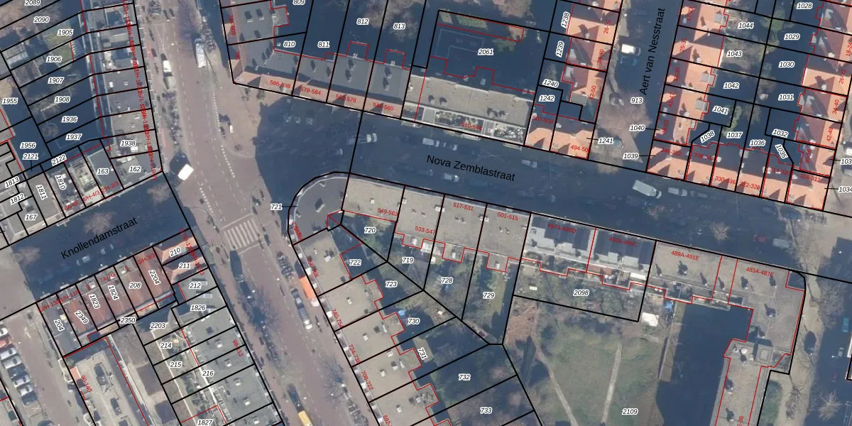 Nova Zemblastraat 535 is gelegen op kadastraal perceel ASD20X719. Deze kadastrale aanduiding is uniek en wordt gebruikt door het Kadaster om eigendomsrechten en andere zakelijke rechten vast te leggen. Het perceel maakt onderdeel uit van de kadastrale gemeente Amsterdam.