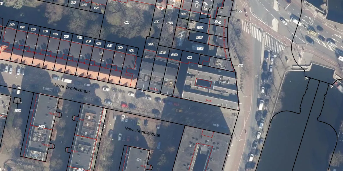 Nova Zemblastraat 8-F is gelegen op kadastraal perceel ASD20X2096. Deze kadastrale aanduiding is uniek en wordt gebruikt door het Kadaster om eigendomsrechten en andere zakelijke rechten vast te leggen. Het perceel maakt onderdeel uit van de kadastrale gemeente Amsterdam.