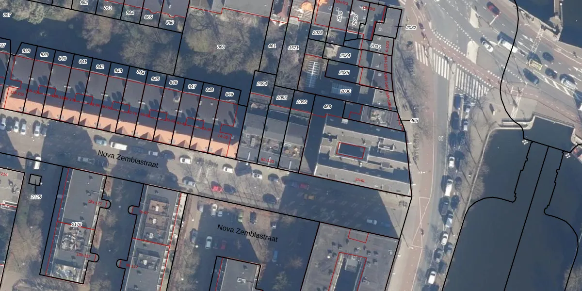 Nova Zemblastraat 8-B is gelegen op kadastraal perceel ASD20X2096. Deze kadastrale aanduiding is uniek en wordt gebruikt door het Kadaster om eigendomsrechten en andere zakelijke rechten vast te leggen. Het perceel maakt onderdeel uit van de kadastrale gemeente Amsterdam.