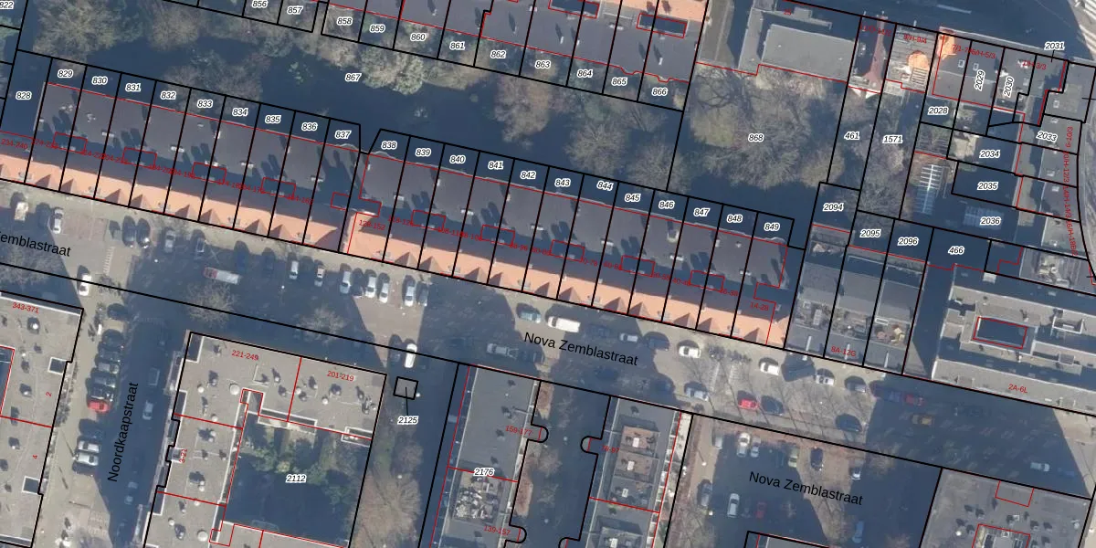 Nova Zemblastraat 82 is gelegen op kadastraal perceel ASD20X843. Deze kadastrale aanduiding is uniek en wordt gebruikt door het Kadaster om eigendomsrechten en andere zakelijke rechten vast te leggen. Het perceel maakt onderdeel uit van de kadastrale gemeente Amsterdam.